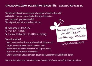 Einladung exklusiv für Frauen in die Tantra-Massage-Praxis